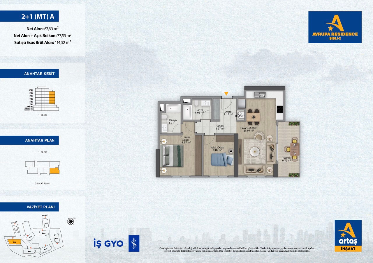 Discover the epitome of exclusive city living at Avrupa Residence Sisli-2, a prestigious development situated in the vibrant heart of Istanbul’s European side. Crafted by the renowned Artaş Group, this signature project redefines urban luxury by blending sophisticated architectural design with the dynamic energy of Şişli.