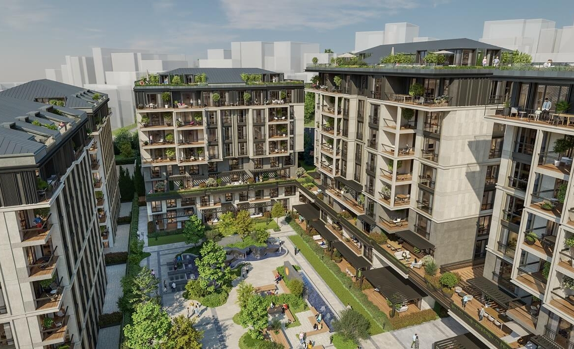 Living here means being surrounded by history and nature while enjoying the comforts of a modern gated community. The project is situated among 200-year-old trees and is only a few minutes away from the blue waters of the Bosphorus. Residents can enjoy beautifully landscaped gardens, decorative pools, and peaceful walking tracks right at their doorstep. The architectural focus on low-rise buildings ensures a quiet and exclusive atmosphere, which is a rare find in such a central European-side location.