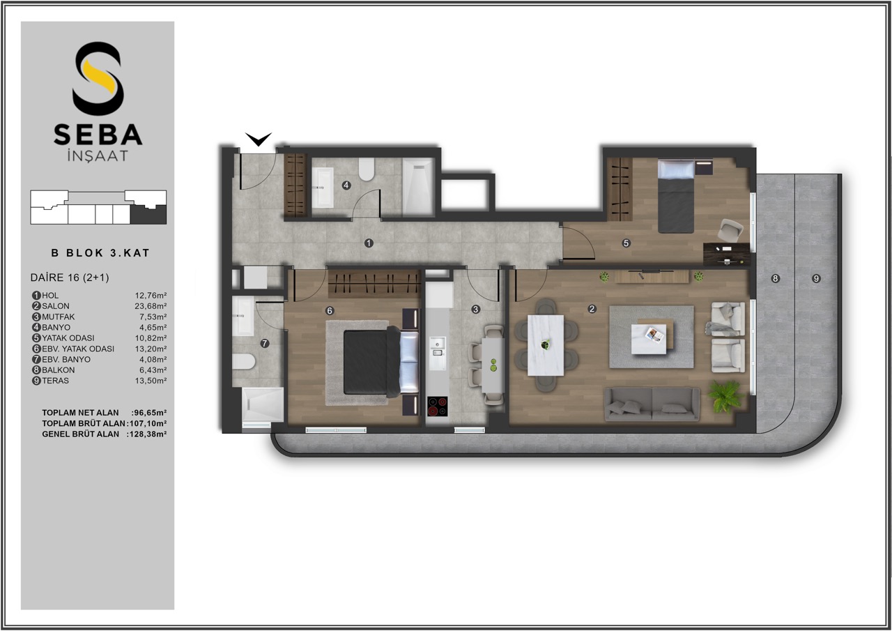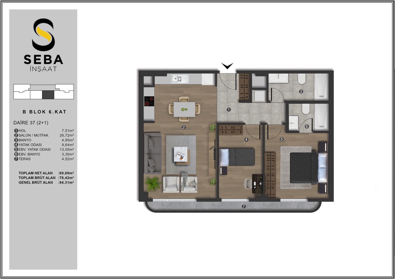 The lifestyle at Seba Casa is defined by the dynamism of Istanbul and the prestige of a well-planned community. The interior spaces feature high-end finishes and modern kitchen concepts that cater to sophisticated tastes. Large windows and private terrace areas allow for plenty of natural light and provide a refreshing outdoor connection within the city. This project is not just a residence but a prestigious living concept that aims to add value to every moment of your daily life.